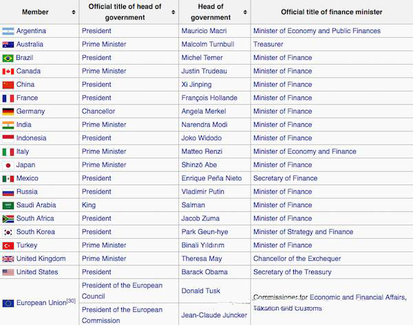 来,大家看看完整的G20各国领导人列表