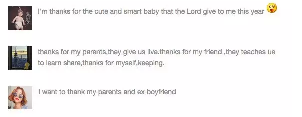 Make a small speech about what you're thankful for: 每人说段话,说自己感恩什么